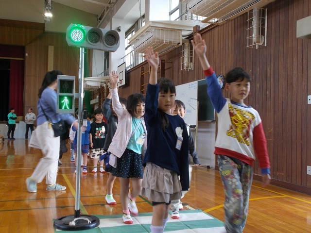 1・2年生 交通安全教室で学びました! 公開日 2026/04/28 更新日 2026/04/28 1年生 4月27日(月)に津島警察署より講師をお招きし「交通安全教室」を行いました。子どもたちは、「止まる」「見る」「待つ」の合言葉が大切であることを学びました。実際に横断歩道の渡り方を練習し、安全に気を付けて歩行することができました。 +2 いいね(0)