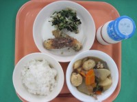 ご飯 牛乳 わかさぎとたまねぎの黒酢がらめ 小松菜のおひたし 根菜の味噌汁 ...