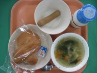 クロスロールパン 牛乳 フランクフルト ひとくちチーズ 野菜スープ 今日はい...