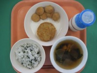 わかめご飯 牛乳 里芋コロッケ けんちん汁 手作りお月見団子 今日10月6日...