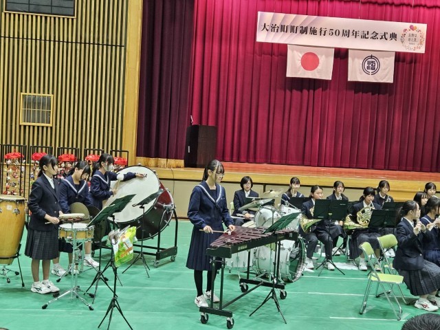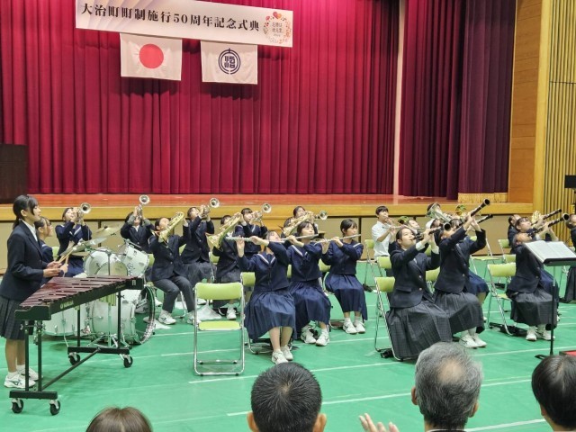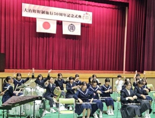 町制50周年記念式典のフィナーレを飾ったのは吹奏楽部でした。