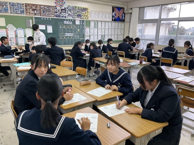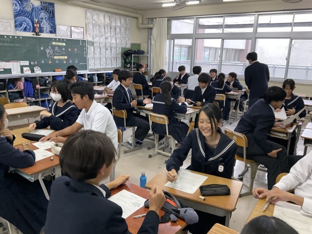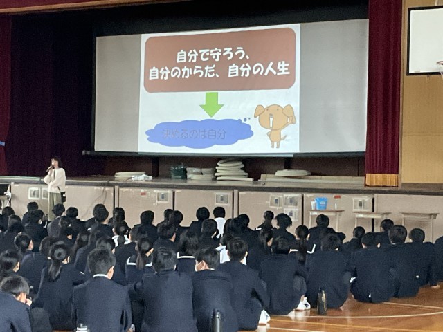 前半は養護教諭から性感染症についての話を聞き、後半は各学級で自分の夢や未来について考えました。