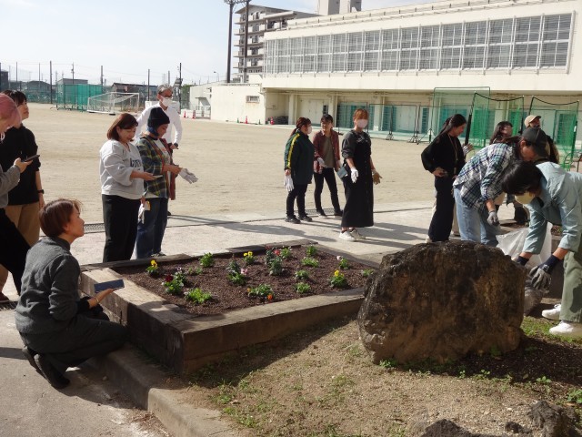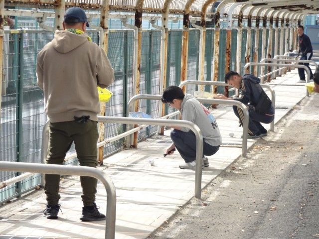 11月8日におやじの会の皆さんとPTAの役員の皆さんに「生徒が駐輪しやすくなるように」「学校が彩り豊かになるように」と自転車小屋のラインと花壇を整備していただきました。