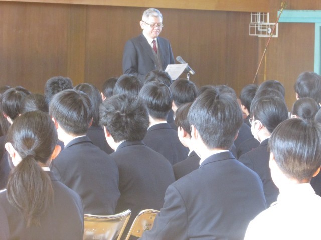 3年生の修了式です。明日に卒業式を控え、厳粛な姿勢で臨みました。代表生徒が修了証を受け取った後、校長先生から「入学してからの成長の軌跡」、「3年生として大治中学校を支えてくれたことへの感謝」など、温かいお言葉をいただきました。